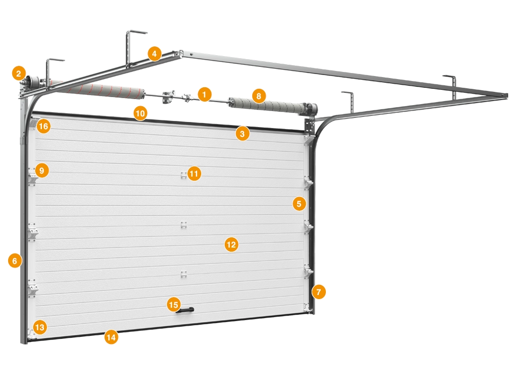1. Система уравновешивания полотна ворот — пружинно-торсионный механизм с устройством защиты от разрыва пружины